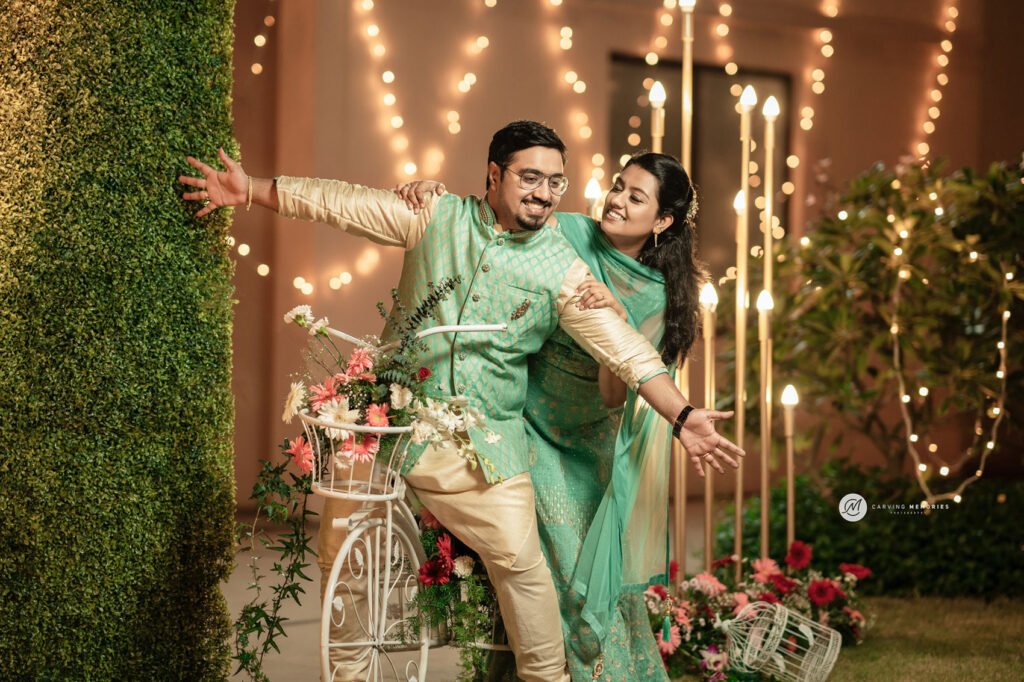 Engagement photography and pre-wedding shoots combine styled posing with candid moments. Photographers plan locations and themes based on the couple’s comfort and personality. Couples often choose beaches, hills, cafes, or open fields around Malappuram.